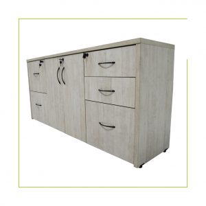 CREDENZA CON CAJONES DE LADO IZQUIERDO Y DERECHO, 2 PAPELEROS Y 1 DE ARCHIVO, 2 PUERTAS AL CENTRO FABRICADA EN MELAMINA DE 28 Y 16 MM, CANTO EN PVC TERMO ADHERIDO.